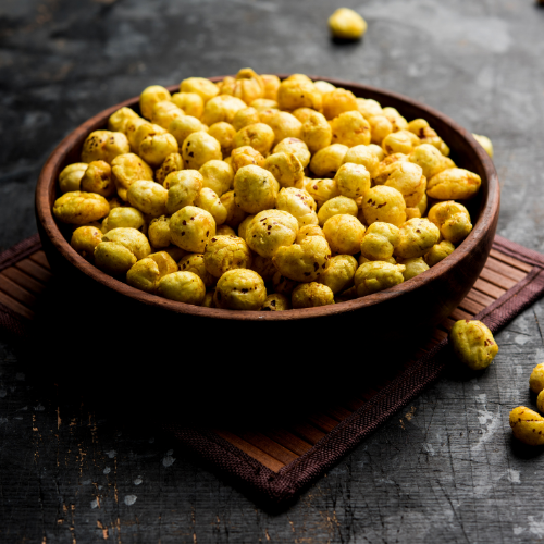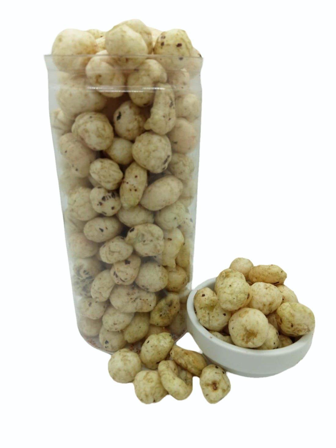 Refreshing roasted lotus seeds infused with authentic pudina (mint) flavor, offering a cool, invigorating twist on a traditional superfood snack that tantalizes the taste buds and provides wholesome nutrition.